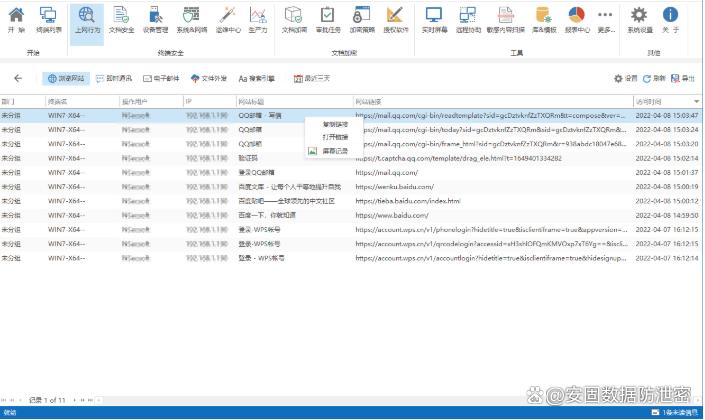 用户行为监控:记录和分析用户在局域网内的行为,如访问的网站、使用的应用程序、发送的邮件等,确保员工行为合规。