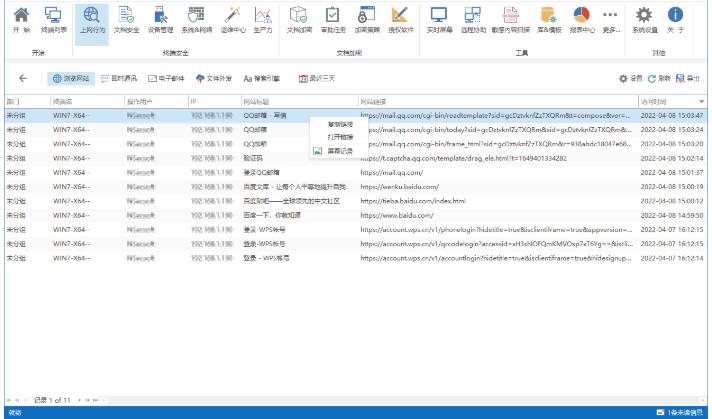 详细记录员工的网站浏览记录、搜索记录、文件上传下载记录等,全面把控员工的上网行为。