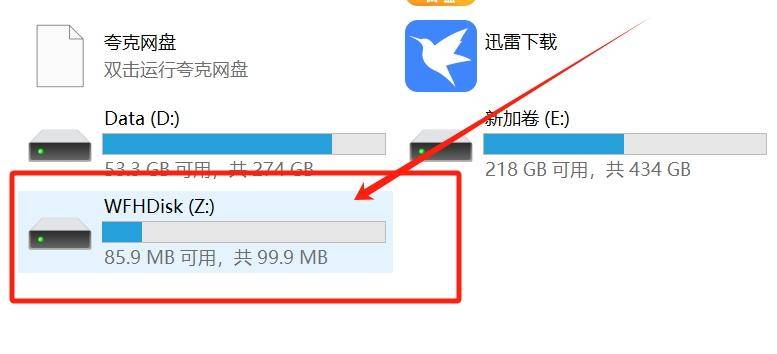 设置完后软件会自动在系统上挂载一个相应大小的WFHDisk(Z)磁盘。
