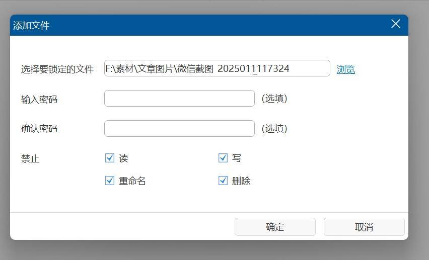 锁定文件时选择要锁定的文件,再设置密码、选择需要禁止的属性。