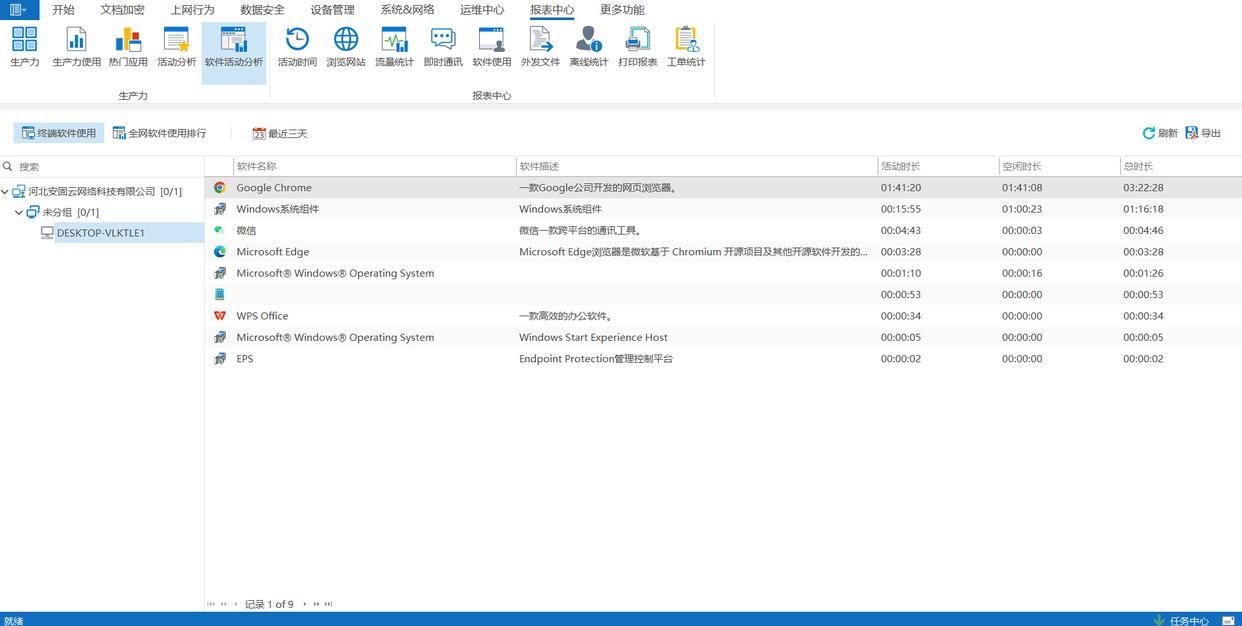 此外,安固软件还支持应用程序使用时长统计,帮助企业及时发现并纠正非工作相关的行为。