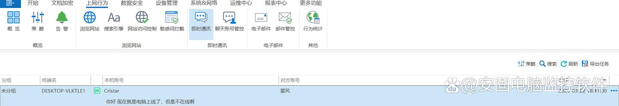 · 聊天记录审查:支持对企业即时通讯工具的聊天内容进行监控,维护良好的沟通秩序。