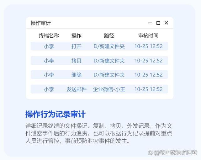 安固软件能够实时监控员工的电脑操作行为,包括文件操作、网络访问、应用程序使用等。通过内置的行为分析引擎,软件能够自动识别异常行为,如大量数据外发、频繁访问敏感文件等,并及时发出告警通知管理员。