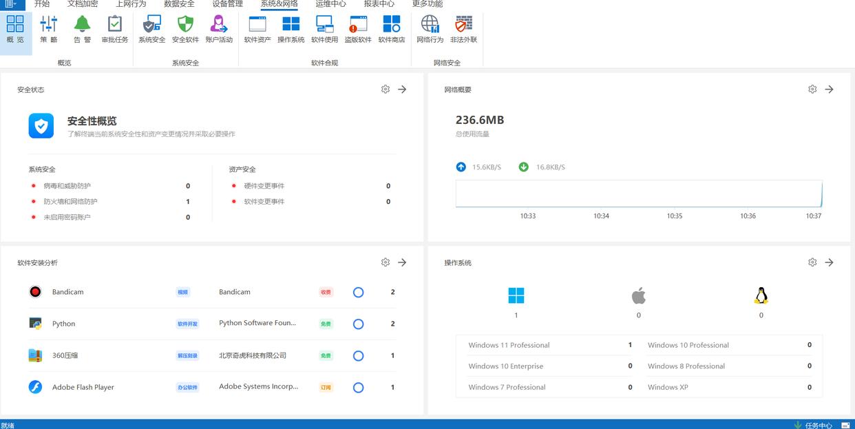 敏感信息保护:提供了强大的数据防泄漏功能,包括文档操作监控、打印行为限制等,确保企业的敏感信息不会外泄。