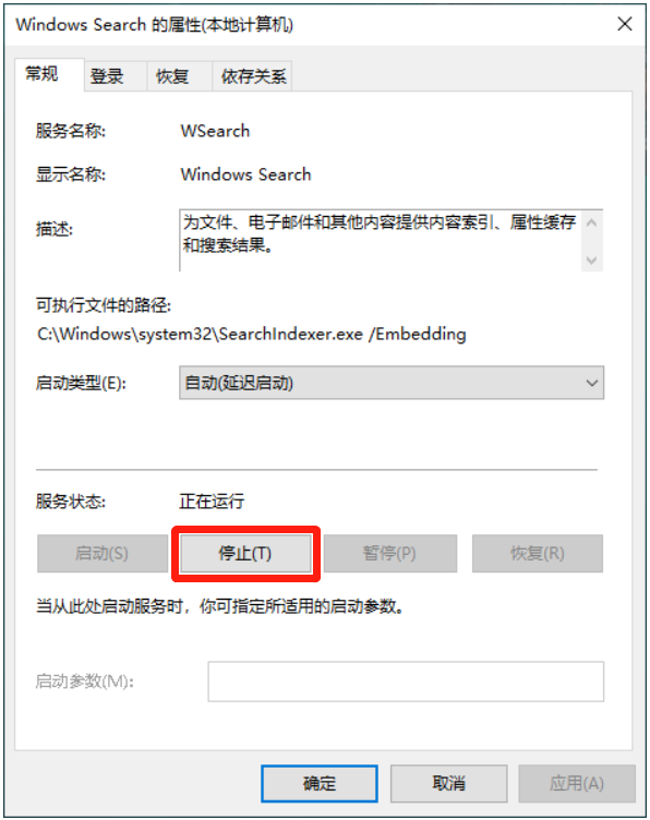 随后查看该服务是否为打开状态,如果关闭了,则需要其启动。如果是运行状态,则可以点击“停止”按钮,随后再次点击“启动”。
