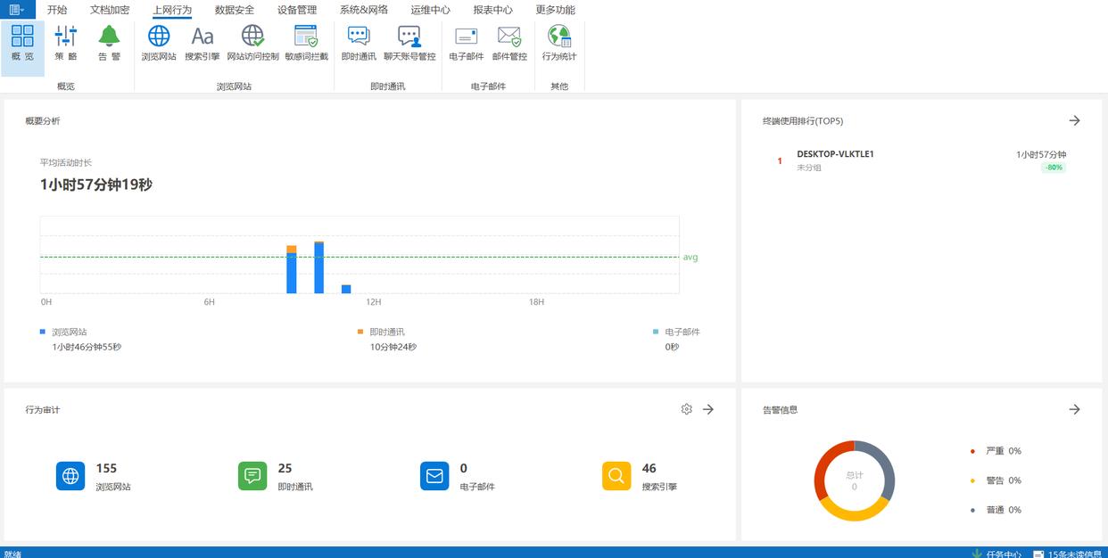上网行为审计:能够详细记录员工访问的网站、使用的应用程序以及在线交流的内容等,为企业提供完整的上网行为日志。