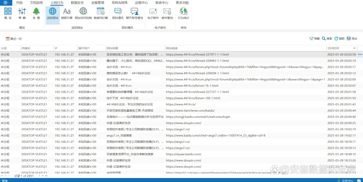 邮件监控:监控员工的邮件收发情况,防止敏感信息通过邮件泄露。