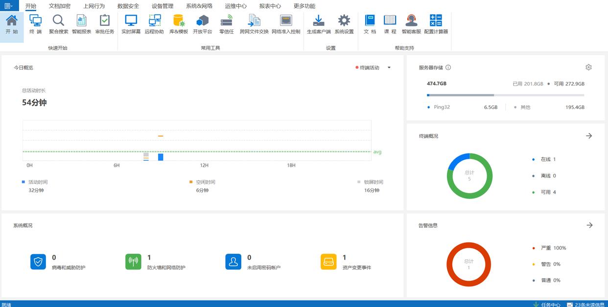 5、远程管理与监控: 软件提供强大的远程管理和监控功能,管理员可以通过控制台远程管理和监控所有终端设备的状态,包括在线状态、安全状态、资源使用情况等。