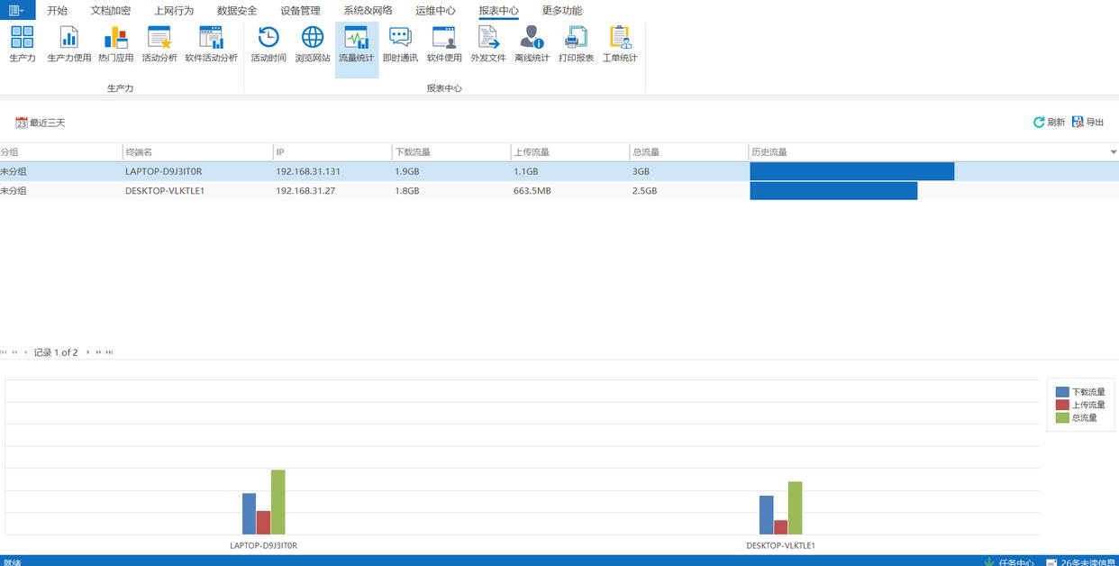 流量监控与分析 安固软件提供详尽的流量监控报告,帮助企业了解网络资源的使用情况,识别潜在的滥用行为,并据此做出合理的资源配置调整,保证网络服务的质量和效率。