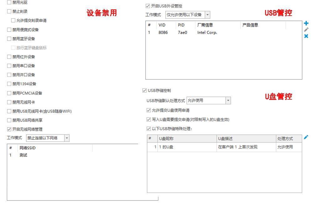 10. 硬件设备管控:例如限制 U 盘等移动存储设备的使用,防止数据通过移动设备泄露,部分软件还能智能识别,只禁用存储设备而不禁用非存储设备;