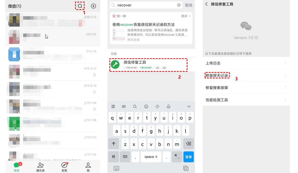 方法2. 使用微信自带Recover恢复微信聊天记录
