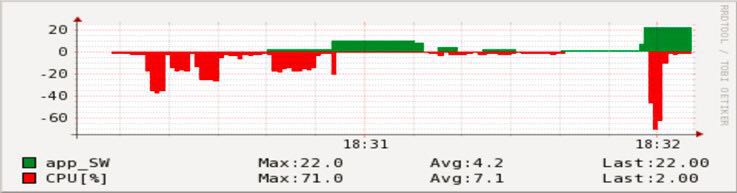 由于复合型DDoS攻击非常常见,因此发生DDoS时开启多个动态开关是常态。当前时刻和历史任意时刻的动态开关可以通过“清洗效果分析系统”的app_SW成员来查看,如下图所示。