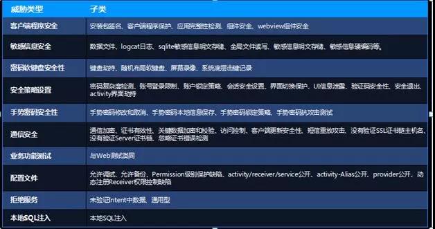 安全检测是移动开发安全防护的第一步,通常需要检测客户端程序安全、敏感信息安全、密码软键盘安全性、安全策略设置、手势密码安全性、通信安全、业务功能测试、配置文件、拒绝服务、本地SQL注入等方面。