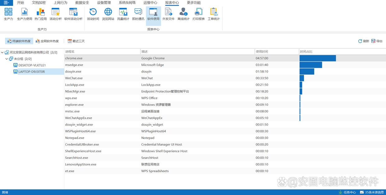 了解员工使用哪些应用程序、使用频率和时长,有助于评估工作效率和识别潜在的时间浪费行为。