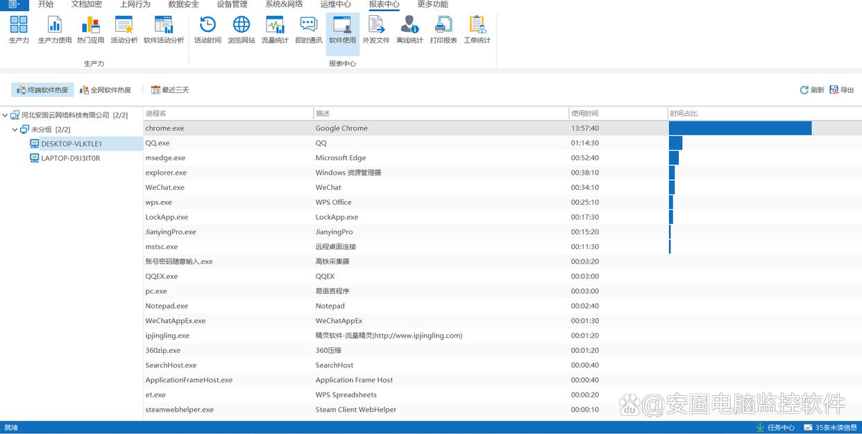 能够实时监控并记录员工使用的应用程序,帮助企业识别那些可能降低生产力或带来安全风险的应用。管理员可以根据需要设定策略,限制某些应用的使用,或者完全禁止与工作无关的软件运行。