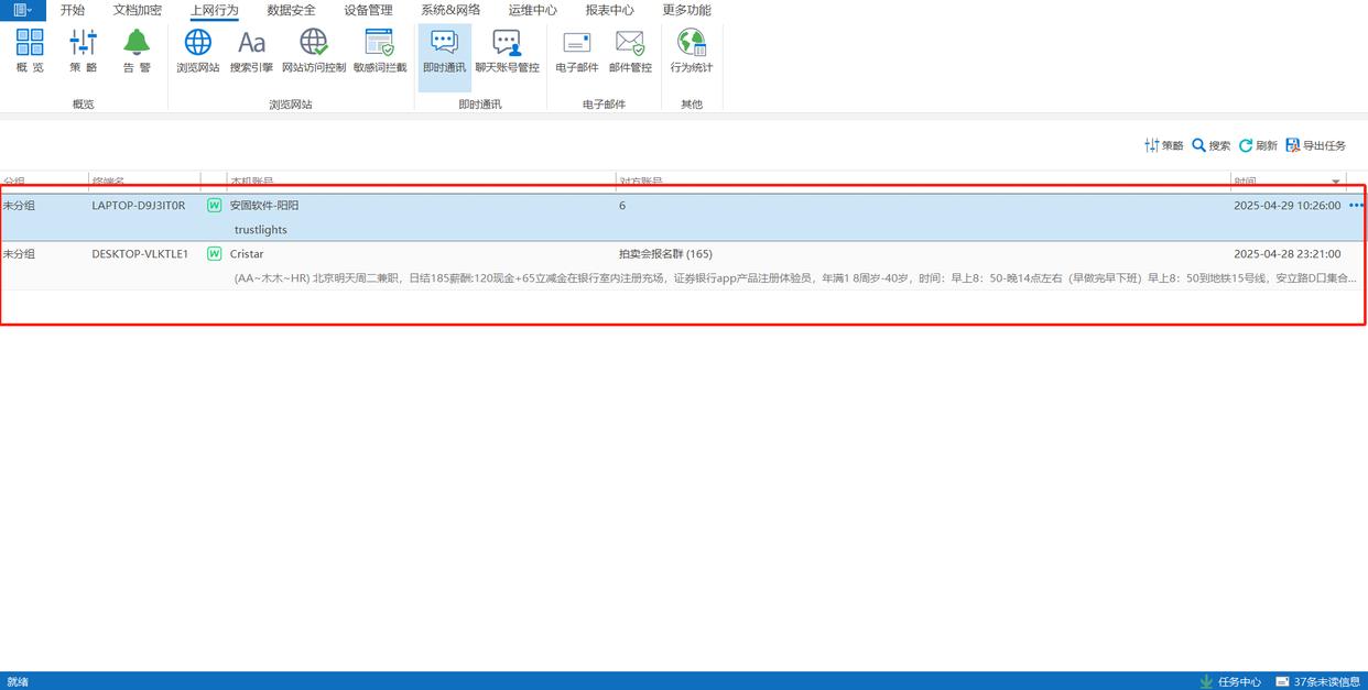 即时通讯监控:深度监控市面上主流的即时通讯工具,如微信、QQ、钉钉、企业微信等。