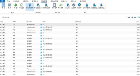 移动存储使用管控:能够对终端计算机的移动存储设备拔插事件予以精准记录。无论是 USB 闪存盘、移动硬盘等设备的插入,还是移除操作,系统都会详细留存相关信息,包括具体的拔插时间、涉及的终端计算机设备信息等。