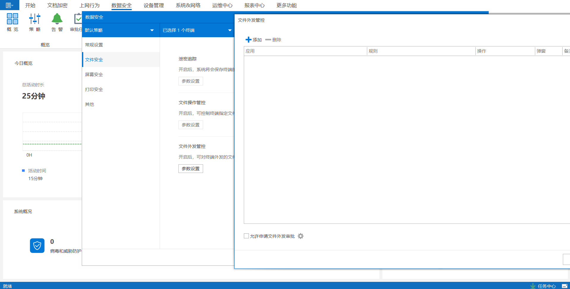 1. 操作步骤:监测并阻止未经授权的文件外发行为,包括邮件、即时通讯工具、云存储服务等。