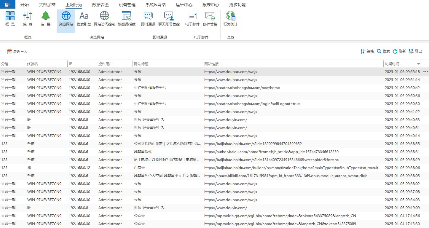 上网行为记录:全面审计员工的上网行为,包括浏览网页、聊天记录、下载文件等。