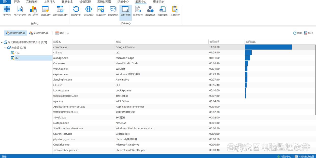 准确统计员工使用各类应用程序的情况,比如启动时间、关闭时间、使用时长等,管理者可以据此了解员工日常工作中对不同软件工具的依赖程度,