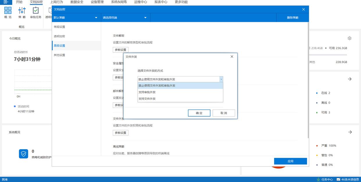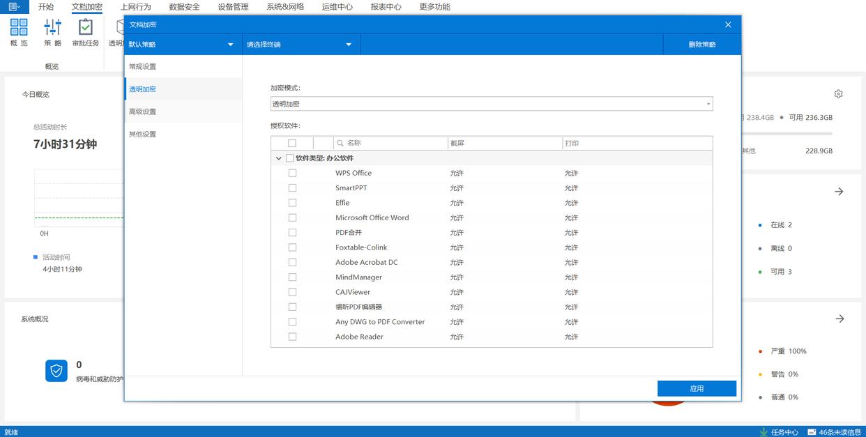支持U盘管控、打印管控、截屏审计等多种安全联动策略