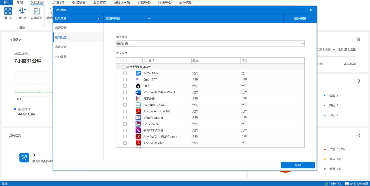 文档透明加密:文件自动加密,员工无需操作,打开即解密,关闭即加密,不影响正常使用。