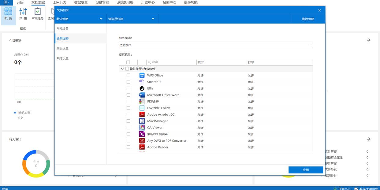 半透明加密:针对不同部门的密级管理程度,实现只对非核心部门使用的加密文档进行安全管控,自身非加密文档不受影响,避免过度管控降低工作效率。