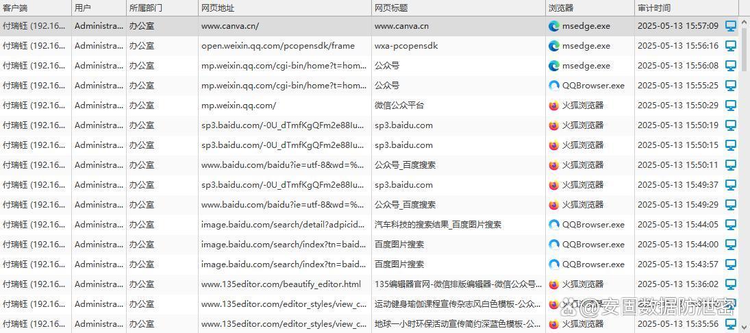 上网行为监控:全面监控员工的网页浏览历史、搜索引擎查询记录等,确保工作时间专注于工作任务。