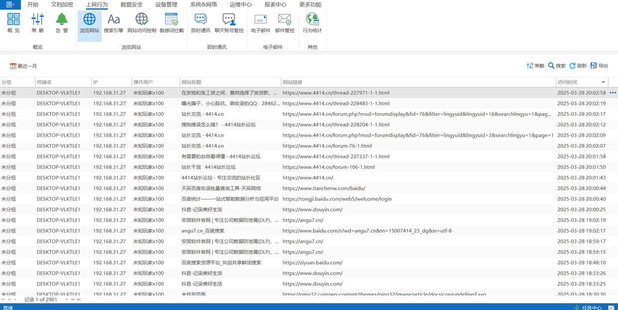 精确记录员工电脑的上网行为,包括访问的网站、使用的应用程序、搜索的关键词等。通过设置黑白名单,管理者可以限制员工访问特定网站或使用某些应用,有效避免员工在工作时间浏览与工作无关的内容,提高工作效率。