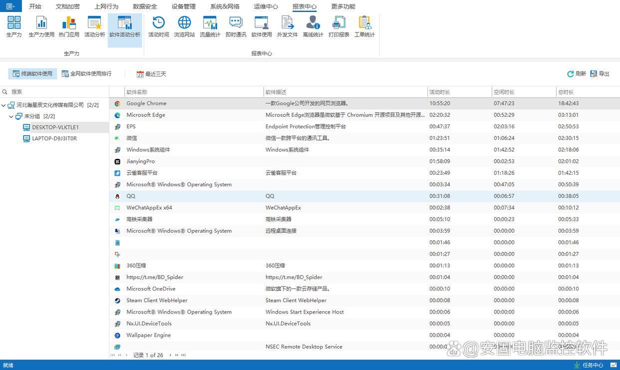 程序运行限制:记录员工使用过的每一个程序,包括启动时间、使用时长和关闭时间。
