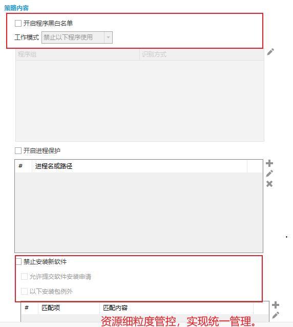 程序运行限制:通过设置程序黑名单,规范员工上网行为,禁止安装、卸载软件或限制使用特定程序作。