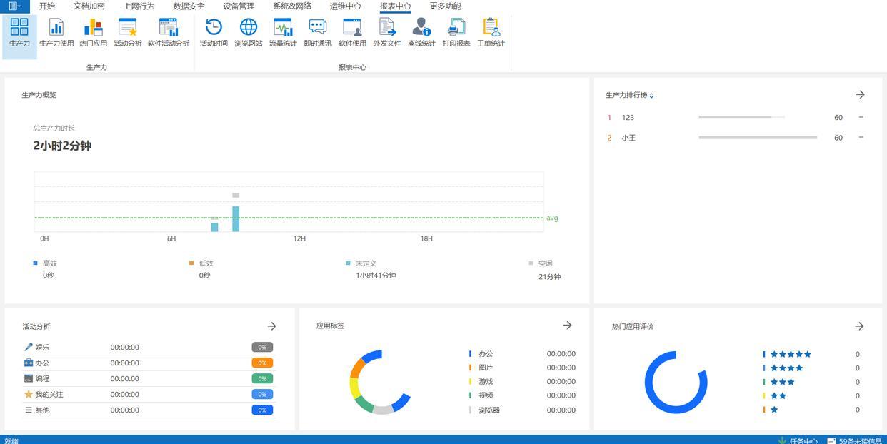 上网行为管理:能记录员工访问的网页地址、应用程序使用情况、文件操作记录等,生成详细审计报告。同时具备网址黑白名单、时间限制、流量监控等功能,防止员工在上班期间访问无关网站,影响工作效率。