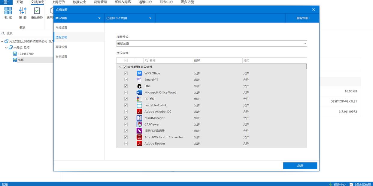多模式加密:支持全盘加密、只解密不加密、不加密等场景,灵活适配不同部门需求。