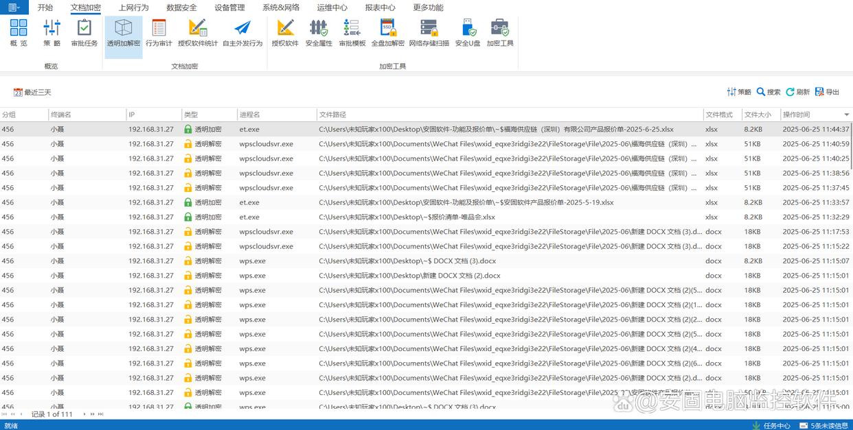 智能加密:它把敏感内容识别技术和文档透明加密技术巧妙地结合到了一块儿。实时盯着终端新创建的文件。一旦发现文件里有敏感内容,比如公司的机密方案、客户的重要信息等,就会自动给文件加密。整个过程都在后台进行,正常办公一点不受影响。