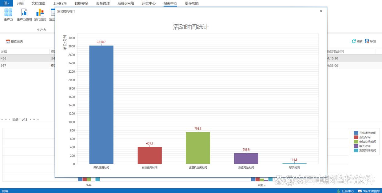 通过大数据分析员工工作效率,识别低效行为(如长时间闲聊、频繁切换程序)。