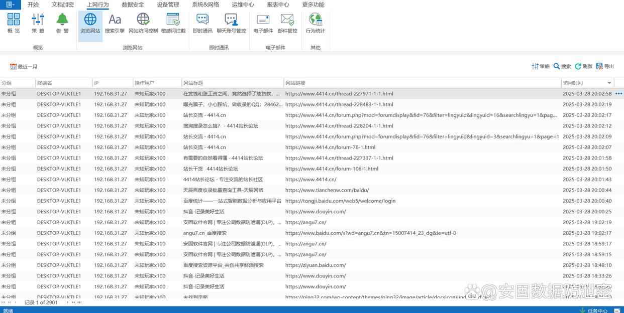 管理员可以随时查询和分析这些日志,了解员工的工作状态和网络活动情况。