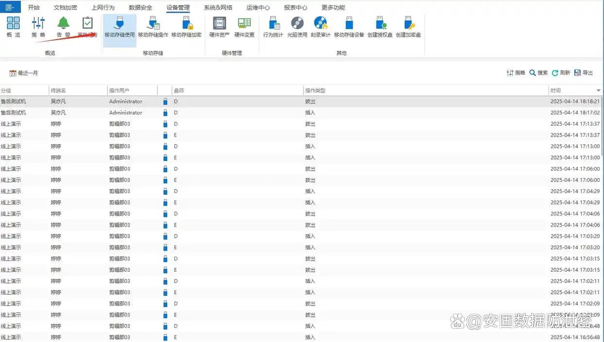 行为监控:能把用户对 U 盘的操作行为,像什么时候插入 U 盘、读取了哪些数据、往里面写入了啥内容,都详细记录下来。