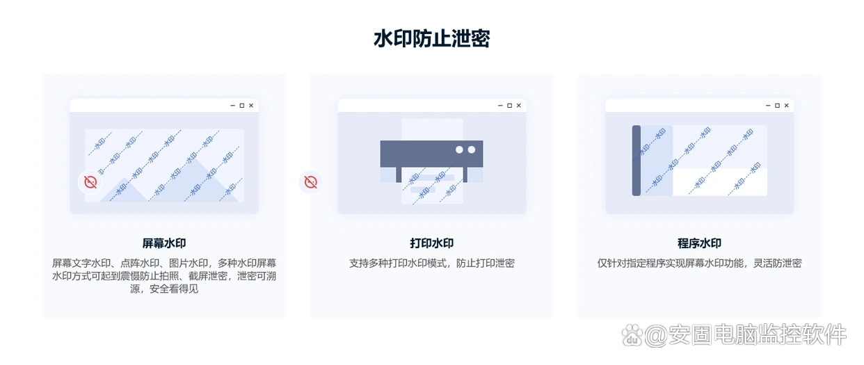 在员工屏幕上动态显示姓名、IP等信息,拍照泄密时可快速溯源。