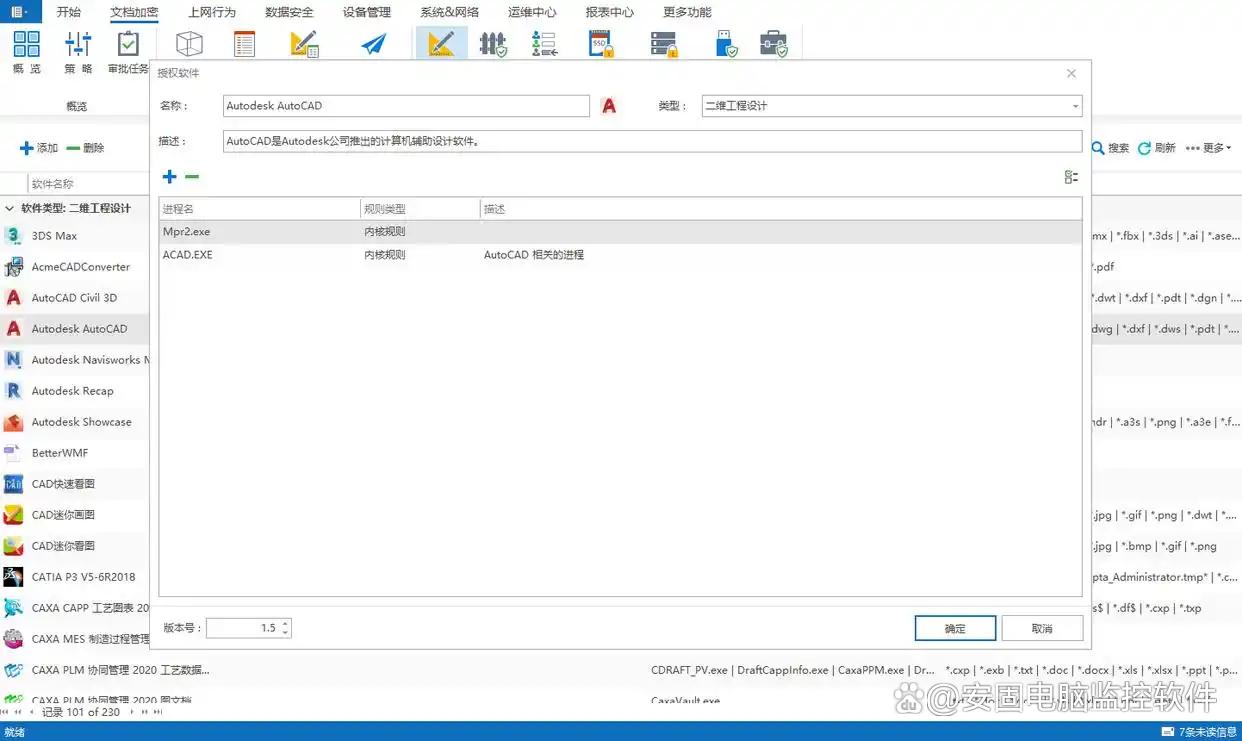 透明加密:采用透明加密技术,在用户创建、编辑 CAD 图纸时,系统自动在后台完成加密,无需用户手动操作。加密后的文件在企业内部授权环境下可正常使用,离开该环境则无法打开或显示为乱码。