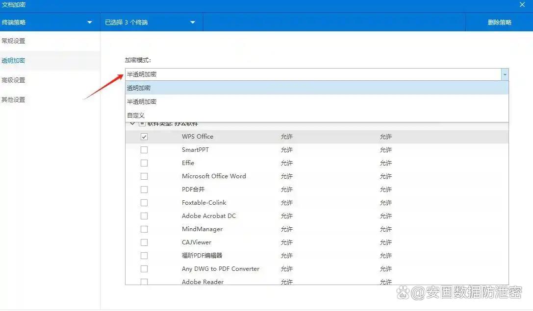 在半透明加密模式下,访问加密文件时,文件会自动解密,加密文件修改保存后,会恢复加密状态。但是新建的文件不会加密,没加密的文件操作不会被限制。