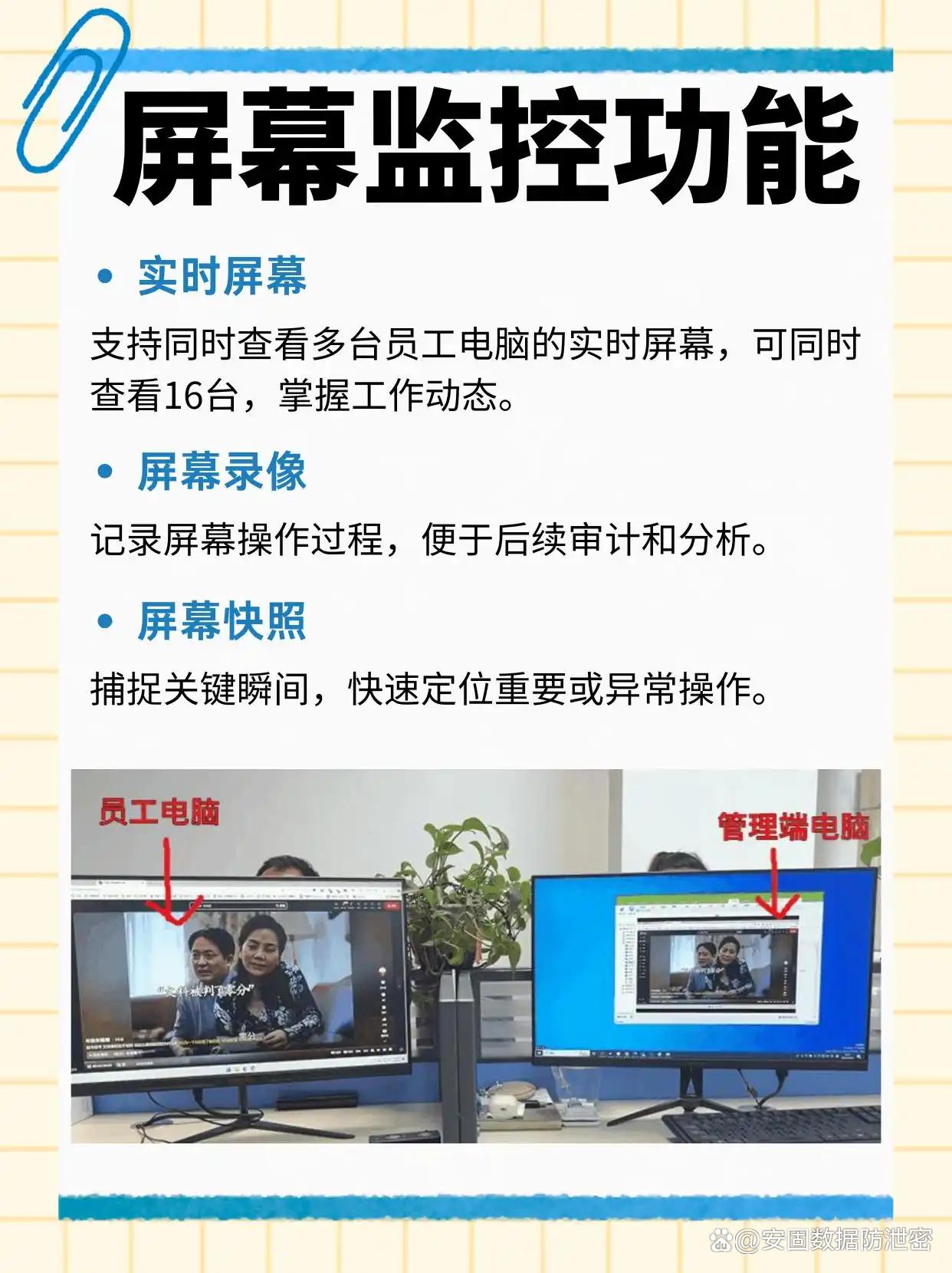 实时屏幕监控:支持多屏实时查看,自动录像和截图,远程办公情况尽在掌握
