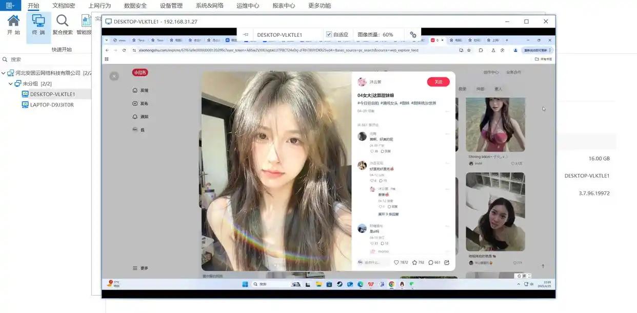 支持远程桌面监控,管理员可以实时查看员工屏幕,确保工作场所的通信安全和效率。