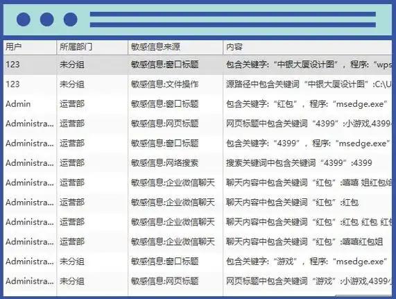 敏感文件报警:自定义敏感词库(如“客户名单”、“报价单”),当员工在聊天、邮件或文档中使用时,系统立即向管理员推送多级预警。