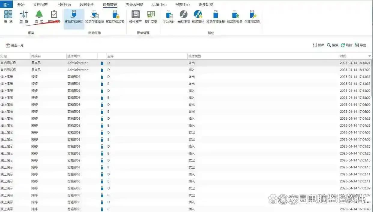 U盘插拔记录:软件可以详细记录U盘的插拔情况,包括U盘的型号、插入时间、拔出时间等信息,方便管理员随时监控U盘的使用动态。