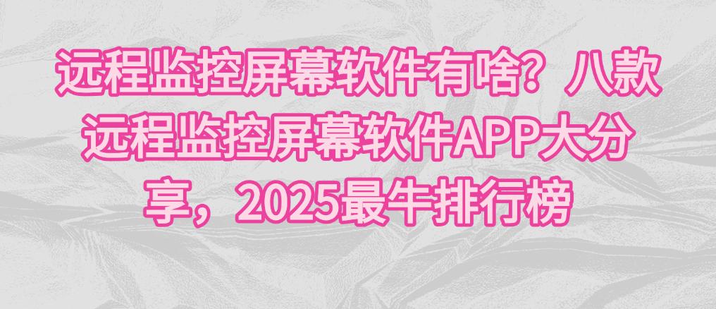 因此,一款好的远程监控屏幕软件就显得尤为重要。今天,我为大家精选了8款顶级监控屏幕APP,废话不多说,咱们赶紧开始吧!