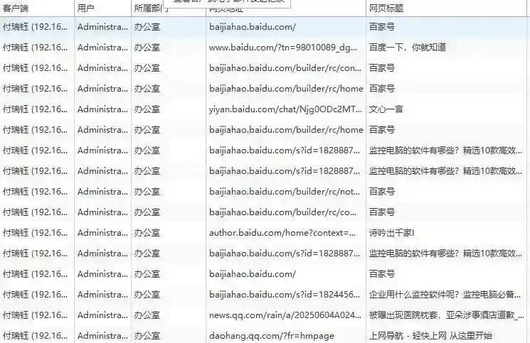 上网行为监控:记录员工访问的网站、搜索内容、聊天记录等,防止员工在工作时间浏览无关网站或进行非工作活动。