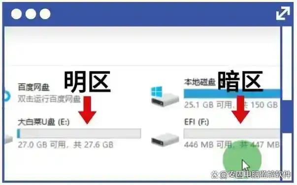 U盘加密:加密后的U盘分为明区和暗区,非授权人员使用加密后的U盘只显示明区,不显示暗区,即使U盘丢失,他人也无法读取其中的数据。