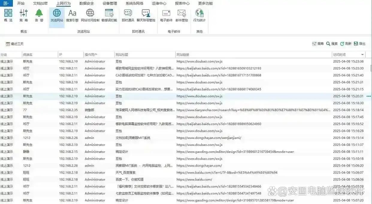 详细记录员工访问的网址、访问时间、停留时长等信息,企业可以根据这个记录,设置网站黑白名单,限制员工上网行为。