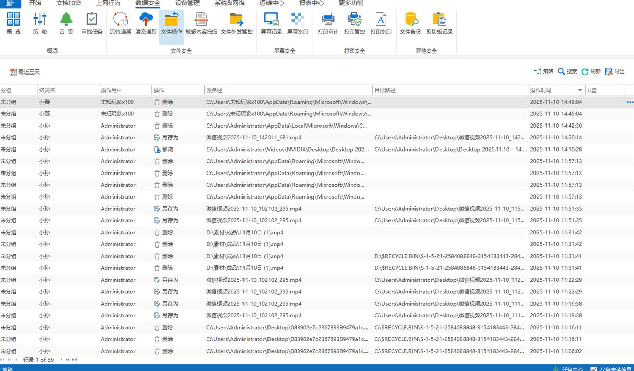 详细记录员工对文档的创建、修改、复制、删除等操作,保护企业重要文件的安全和完整,若出现文件丢失或数据泄露,可迅速追溯源头。