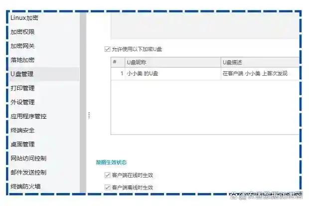外设控制与权限管理:通过严格控制USB、蓝牙等外部设备的使用权限,防止未经授权的数据传输。管理员可以设置白名单或黑名单,灵活管理设备接入。